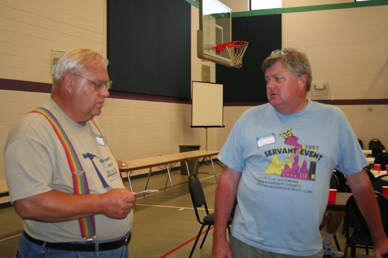The year 1988 saw the groups from Franklin, Nora, and Waynesville joining together for orientation at Camp Schaub. It meant that there were about 120 together before the other two groups left for Franklin and Nora. Mr. Don Zimmer became the new interim Director of Christian Service in 1990. At that time the three Servant Events became independent of the others, so the programs were no longer coordinated. The Franklin group was discontinued a few years later, while the Nora, VA group has continued until the present. Rev. Preston Wagner moved from Emmanuel, Asheville to become the SED DCS Director, and started working with the Servant Events in 1992. During the years of the Event, many families have shared, often over several years. At the first Event in 1982, Charles Younglove had attended as a youth servant, in later years he served as a Junior Counselor and eventually he served as an assistant to the Work Director. His brother, Ronald Younglove, and sisters Sharon and Darlene had also come as participants in various years. In 1990 his father, David Younglove, was encouraged by his children and Mrs.Webb to come as Assistant Work Director. Since then David has faithfully come to evaluate site selections and in more recent years has served as Project Director, in 1992 Pastor Budke retired from full time parish ministry, and that year was away teaching in China during the time of the Event. Though he continued to be involved in site selection, contact people in the next few years included Mr. Dann Jesse, Rev. Mark Hein, Mr. and Mrs. Bill Lewis, and Rev. John Greene. During 1994 there was a major change in accommodations when, shortly before the Event, there was a change in the status of Camp Schaub and the Police with the State, and we found that we were no longer able to meet there. After a number of attempts to find a place, Pastor Budke contacted Pastor Mark Nieting, Bob Foerster and Tommy Ridgeway at Emmanuel, Asheville, and it was agreed that facilities at Emmanuel could be used.